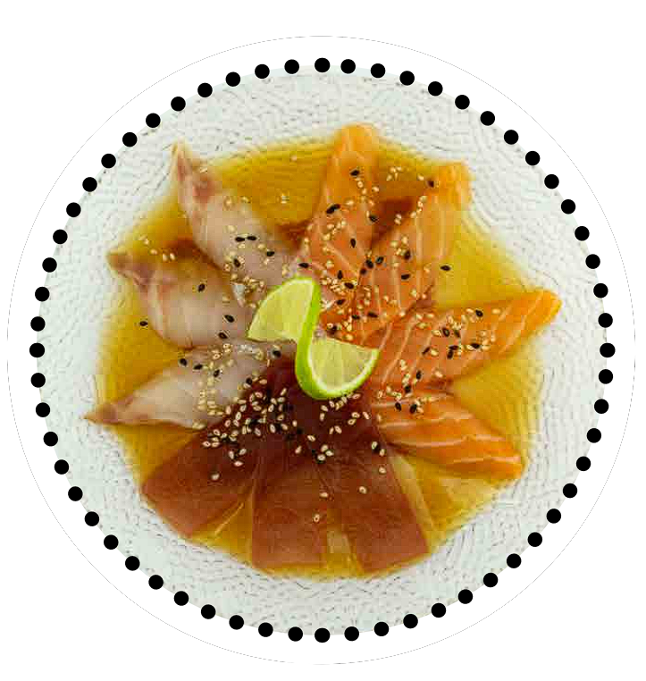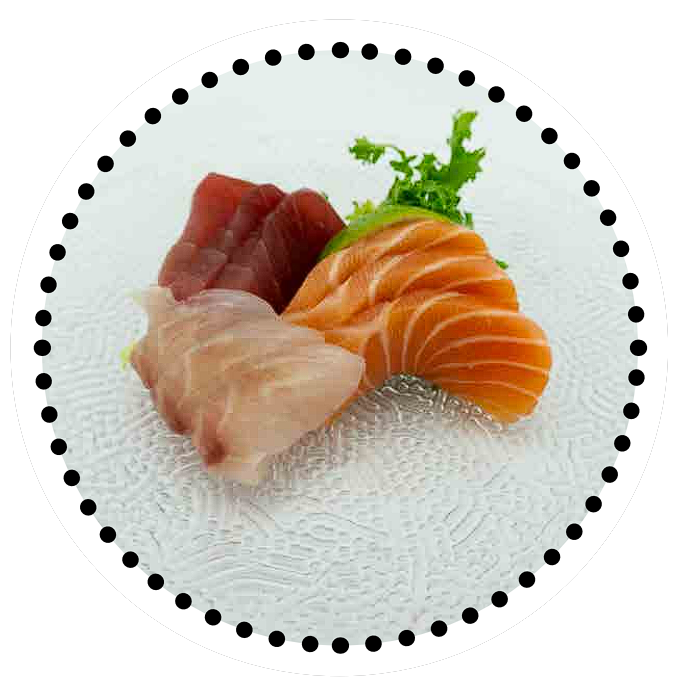 Sashimi di salmone, tonno e branzino crudi (9 pezzi).