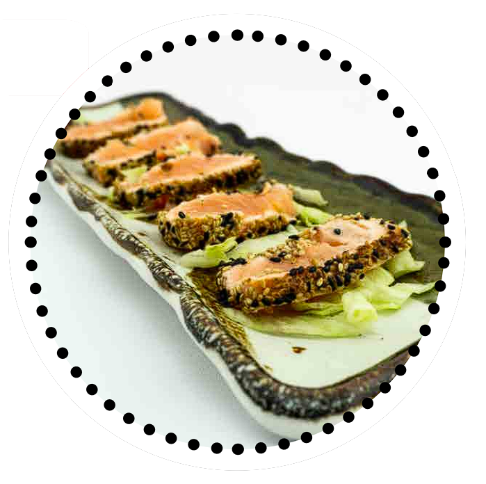 Salmone cotto, salsa Teriyaki, semi di sesamo.